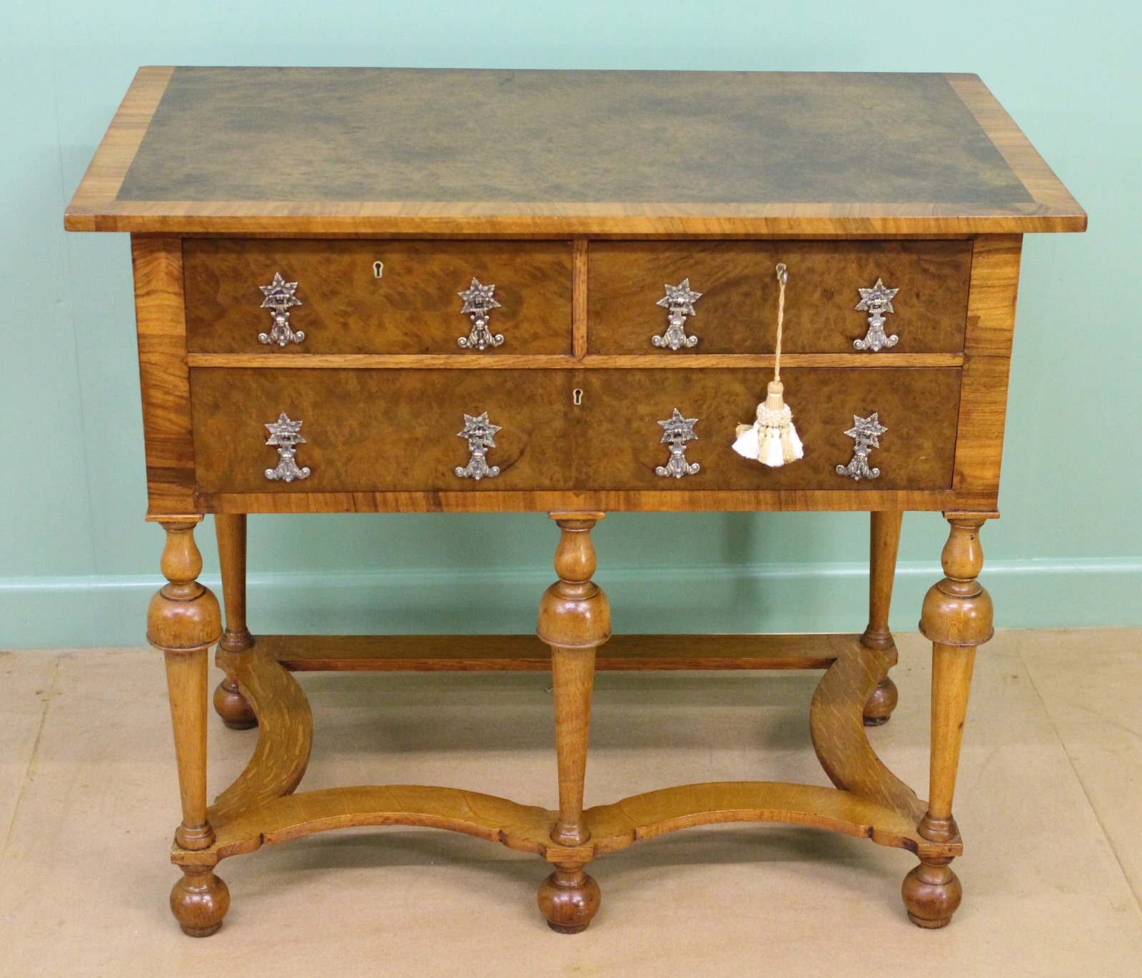 Burr Walnut & Oak Lowboy c.1900