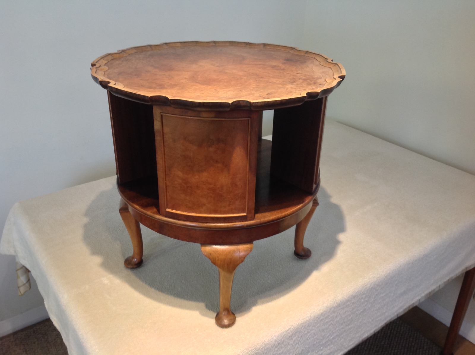 Burr Walnut Occasional Table / Revolving Bookcase c.1920
