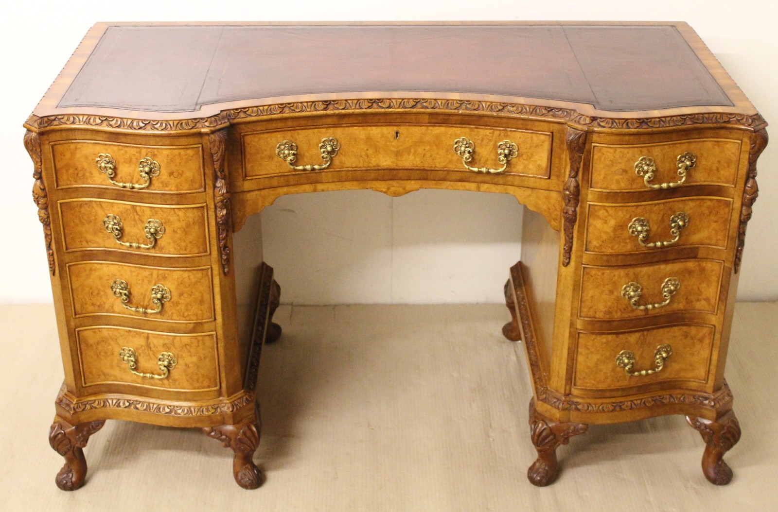Burr Walnut Pedestal Desk by Maple and Co c.1920