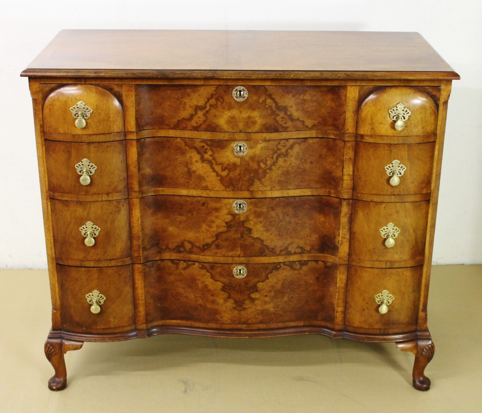 Burr Walnut Queen Anne Style Chest of Drawers c.1900