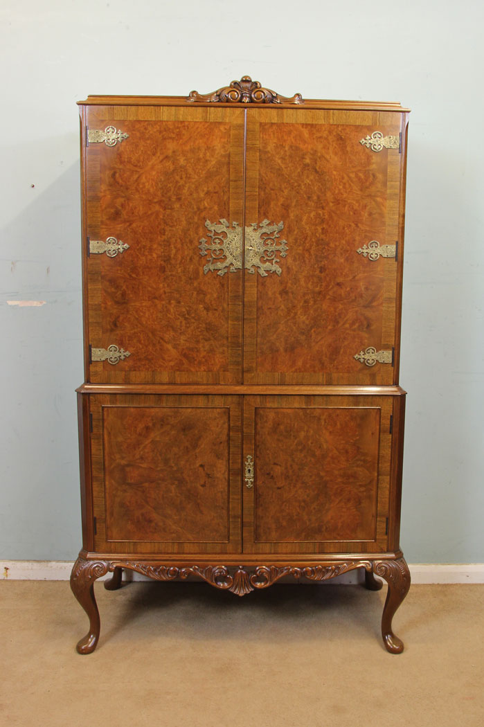 Burr Walnut Queen Anne Style Cocktail Drinks Cabinet C.1930 (1 of 1)