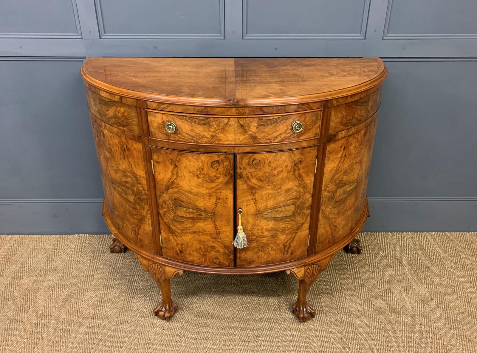 Burr Walnut Queen Anne Style Demi Lune Commode