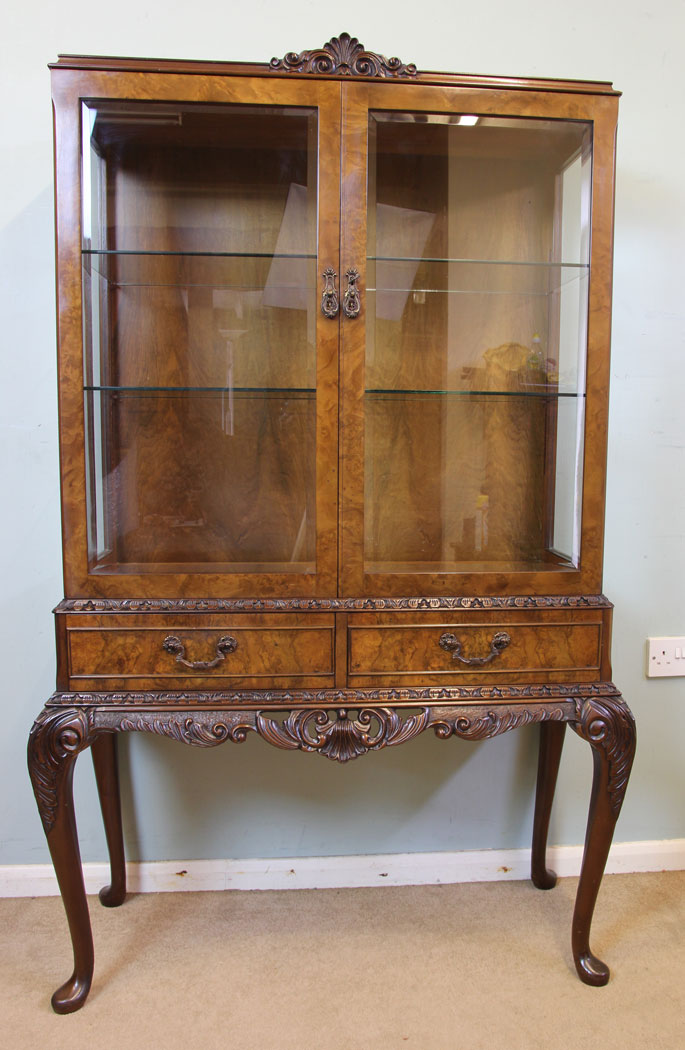 Burr Walnut Queen Anne Style Display Cabinet (1 of 1)