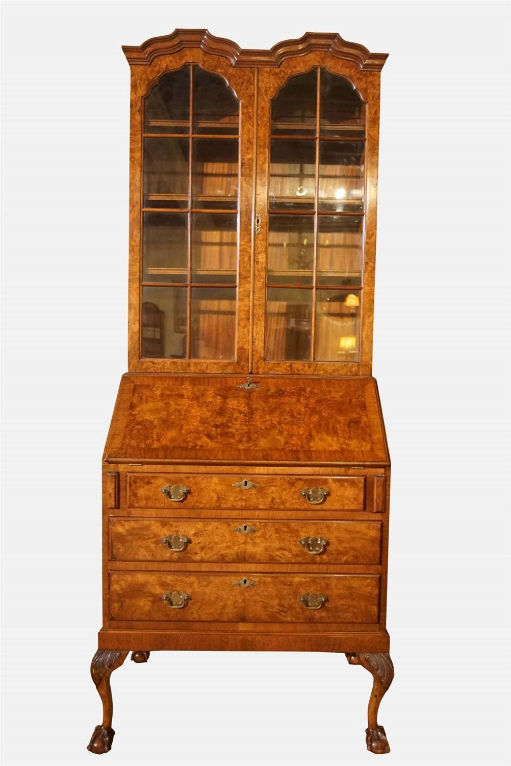 Burr Walnut Queen Anne Style Double-Dome Bookcase (1 of 1)