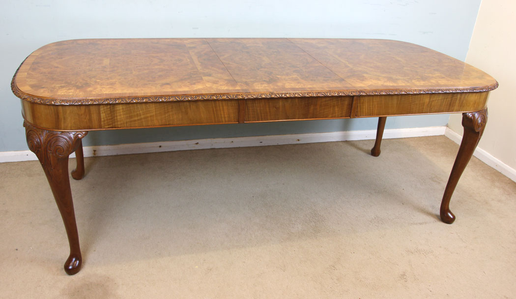 Burr Walnut Queen Anne Style Extending Dining Table (1 of 1)