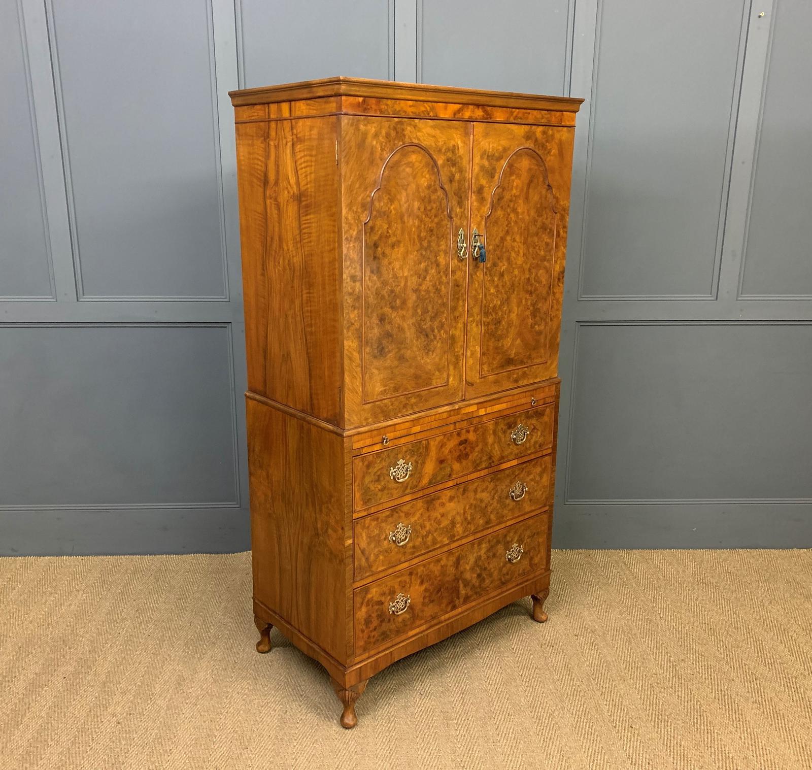 Burr Walnut Queen Anne Style Linen Press