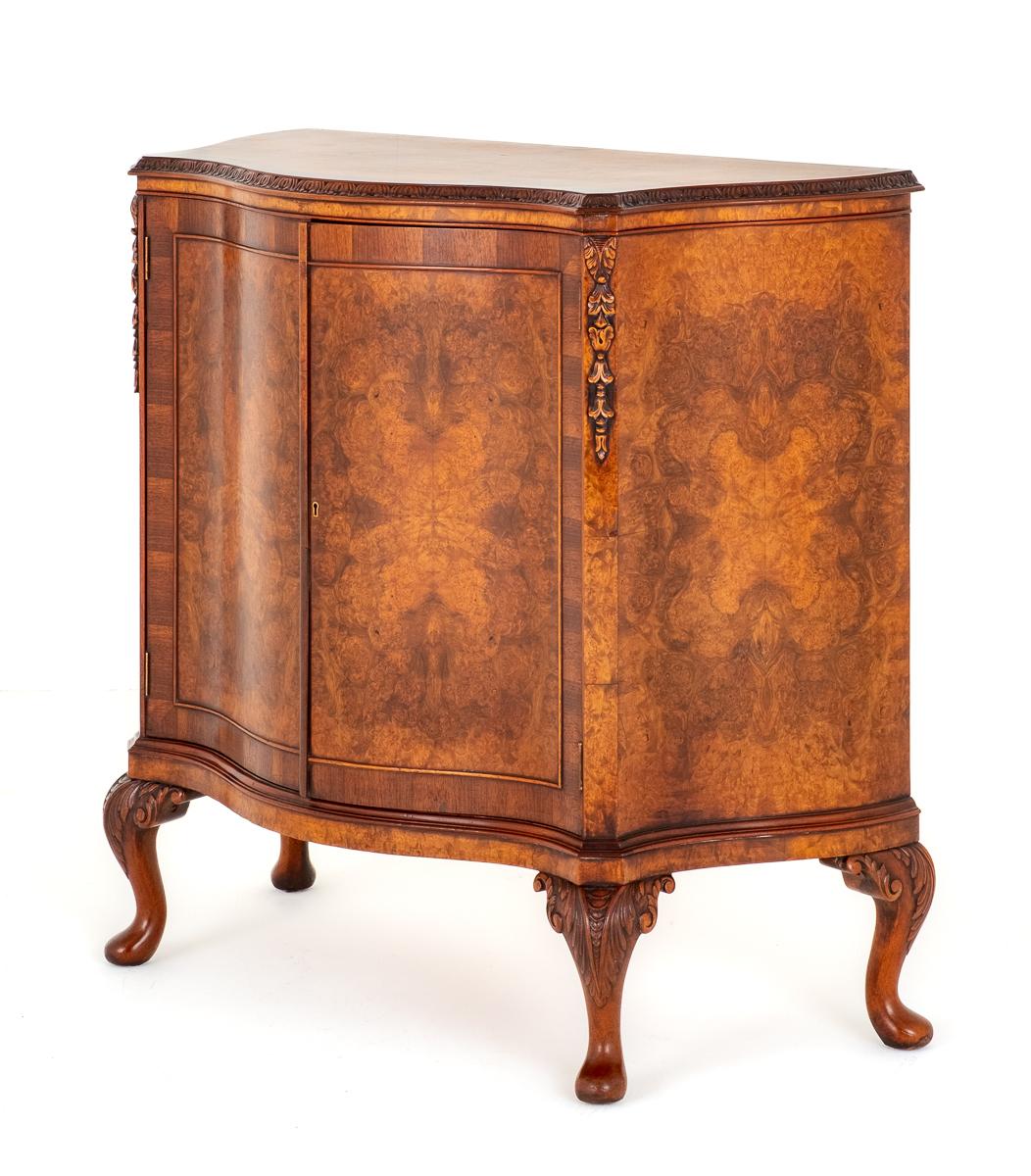 Burr Walnut Queen Anne Style Shaped Side Cabinet