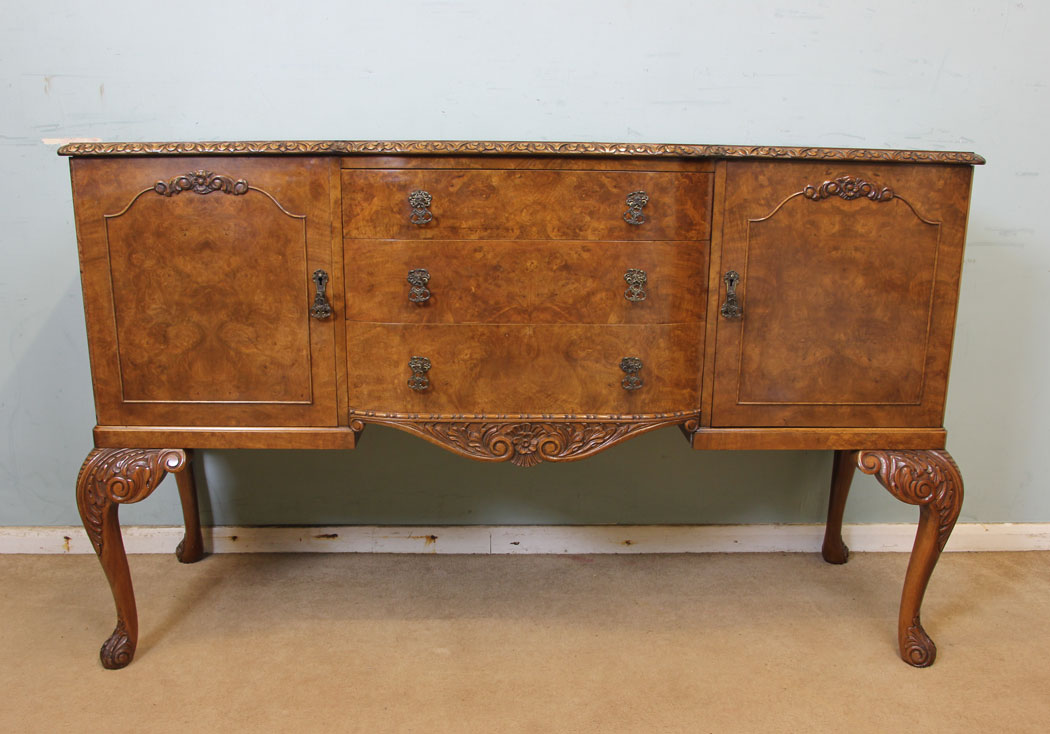 Burr Walnut Queen Anne Style Sideboard