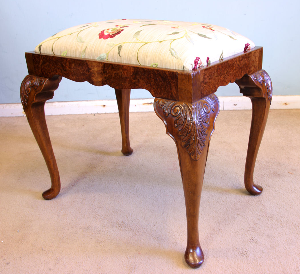 Burr Walnut Queen Anne Style Stool C.1920