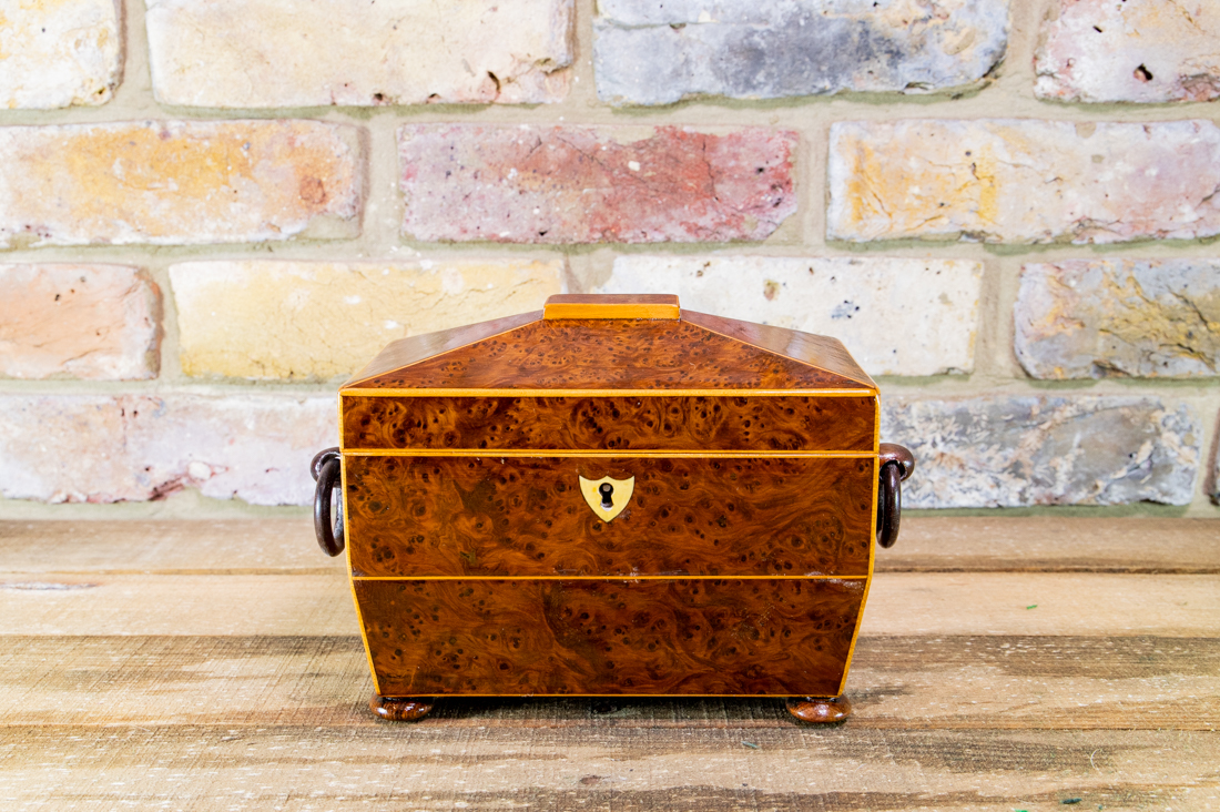 Burr Walnut Regency Tea Caddy c.1820 (1 of 1)