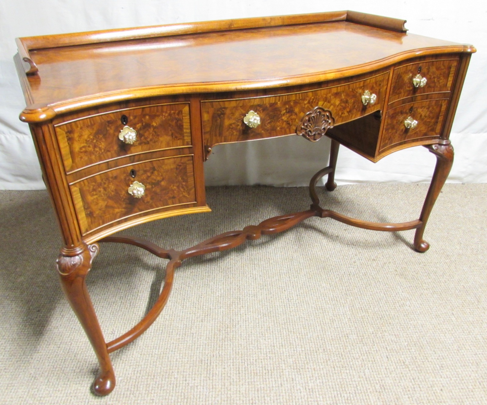 Burr Walnut Serpentine Desk or Dressing Table c.1920 (1 of 1)