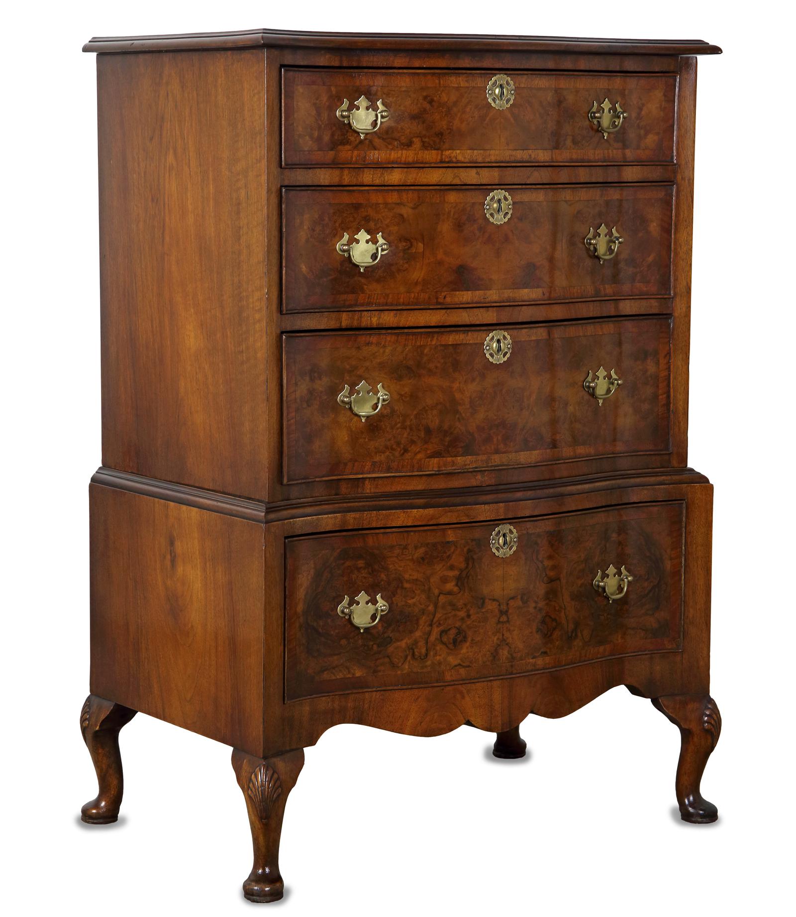 Burr Walnut Serpentine Front Small Chest of Drawers