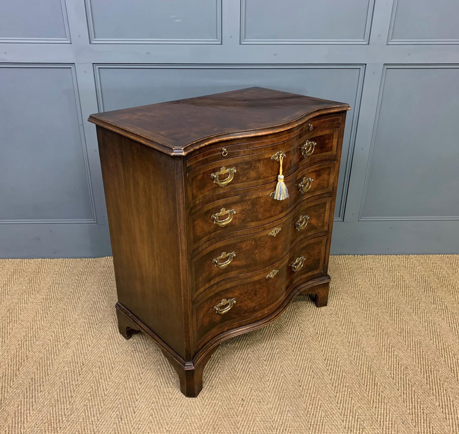 Burr Walnut Serpentine Fronted Bachelors Chest of Drawers
