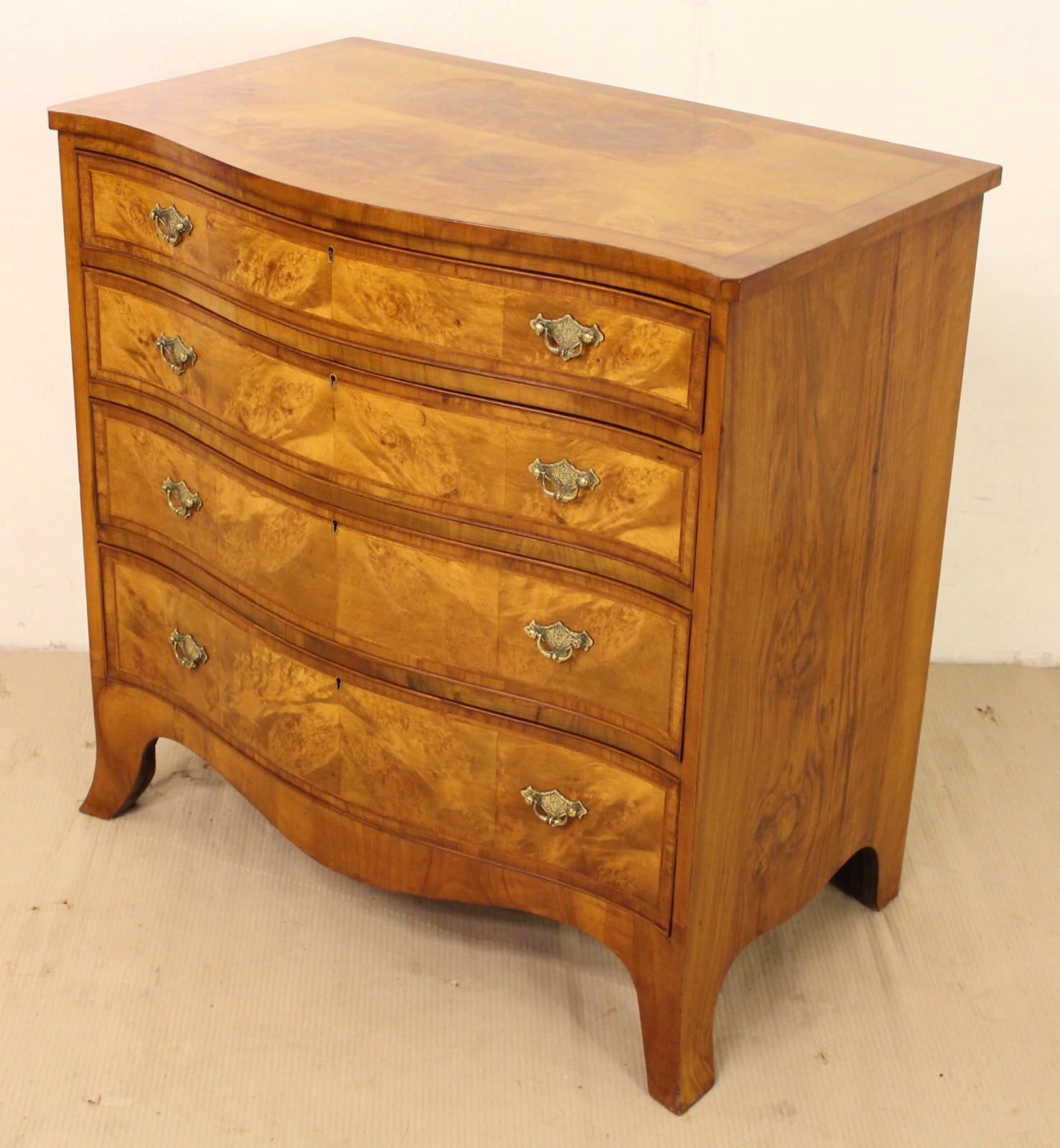 Burr Walnut Serpentine Fronted Chest of Drawers c.1900