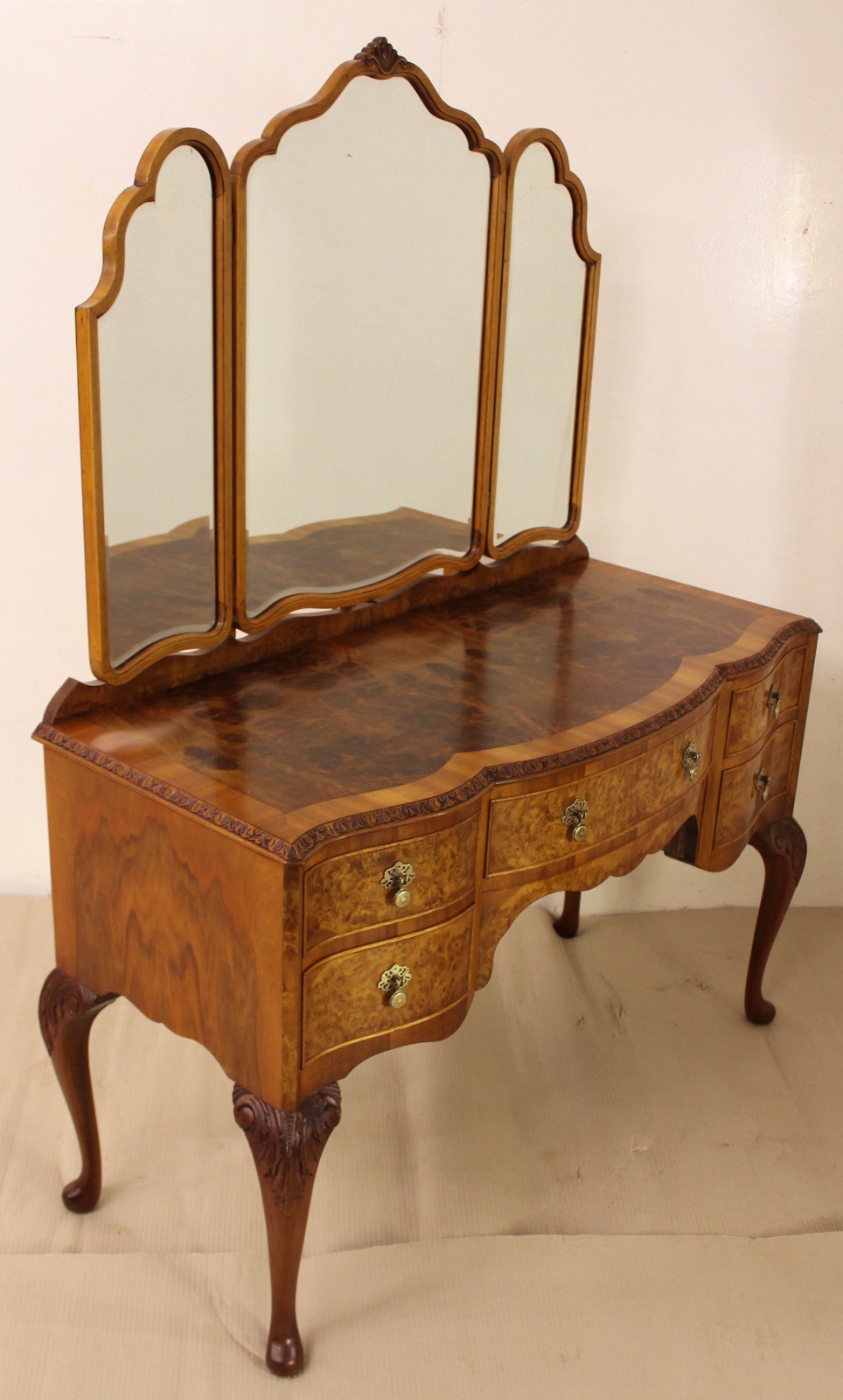 Burr Walnut Serpentine Shaped Dressing Table (1 of 1)