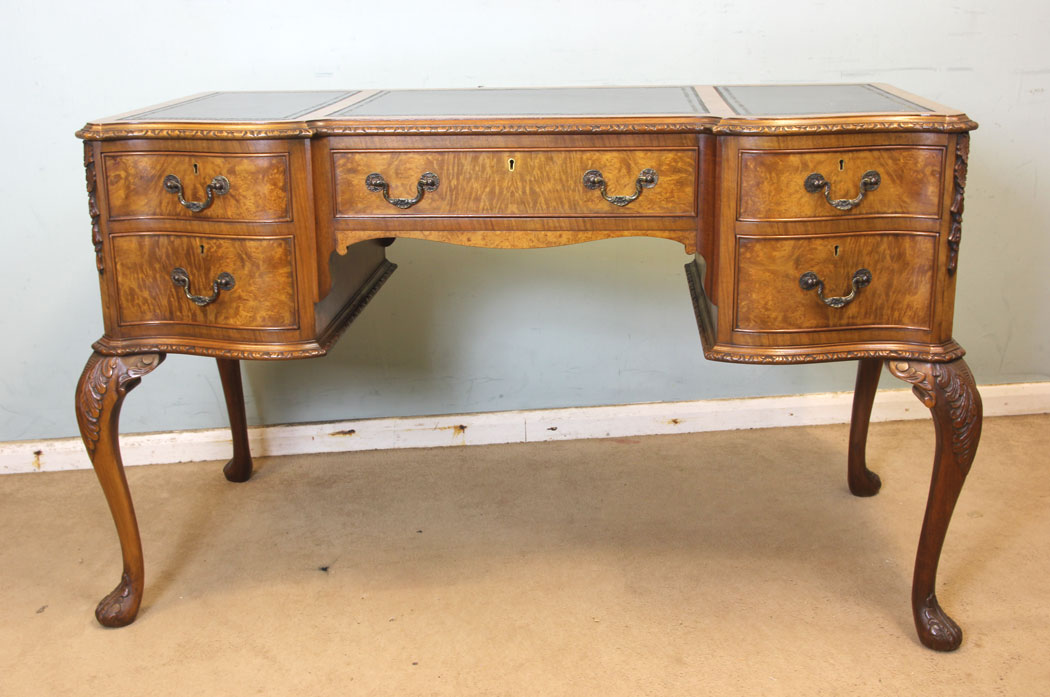 Burr Walnut Serpentine Shaped Knee Hole Writing Desk (1 of 1)