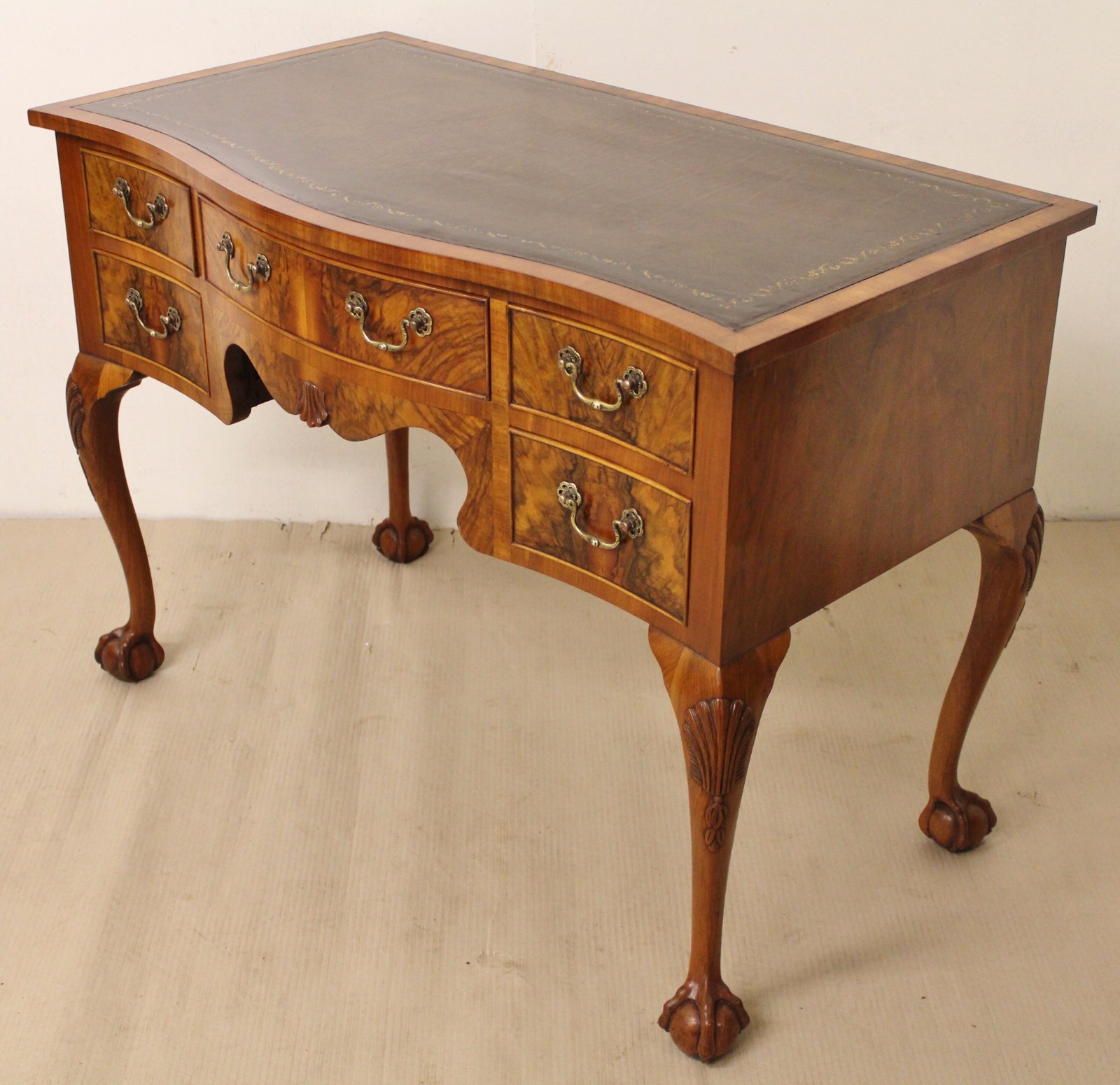 Burr Walnut Serpentine Writing Table c.1900 (1 of 1)
