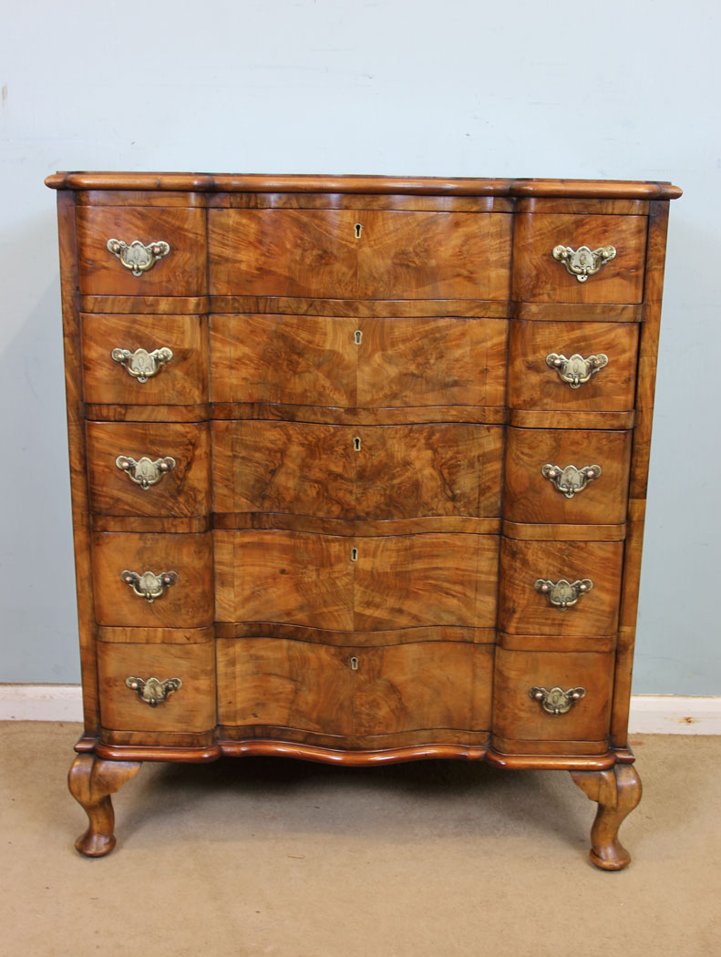 Burr Walnut Shaped Chest of Drawers C.1920 (1 of 1)