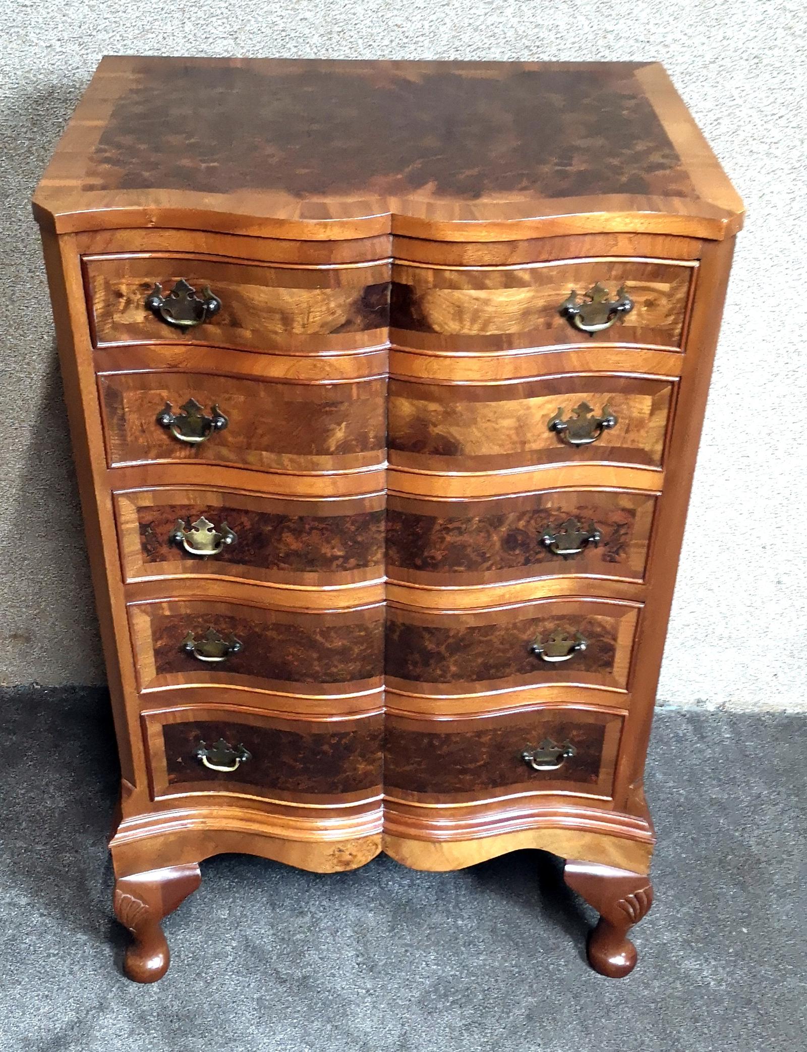 Burr Walnut Shaped Front Chest of Drawers
