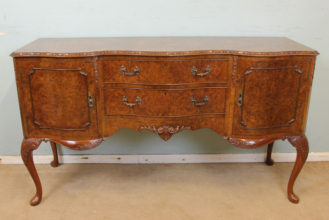 Burr Walnut Sideboard Queen Anne Style