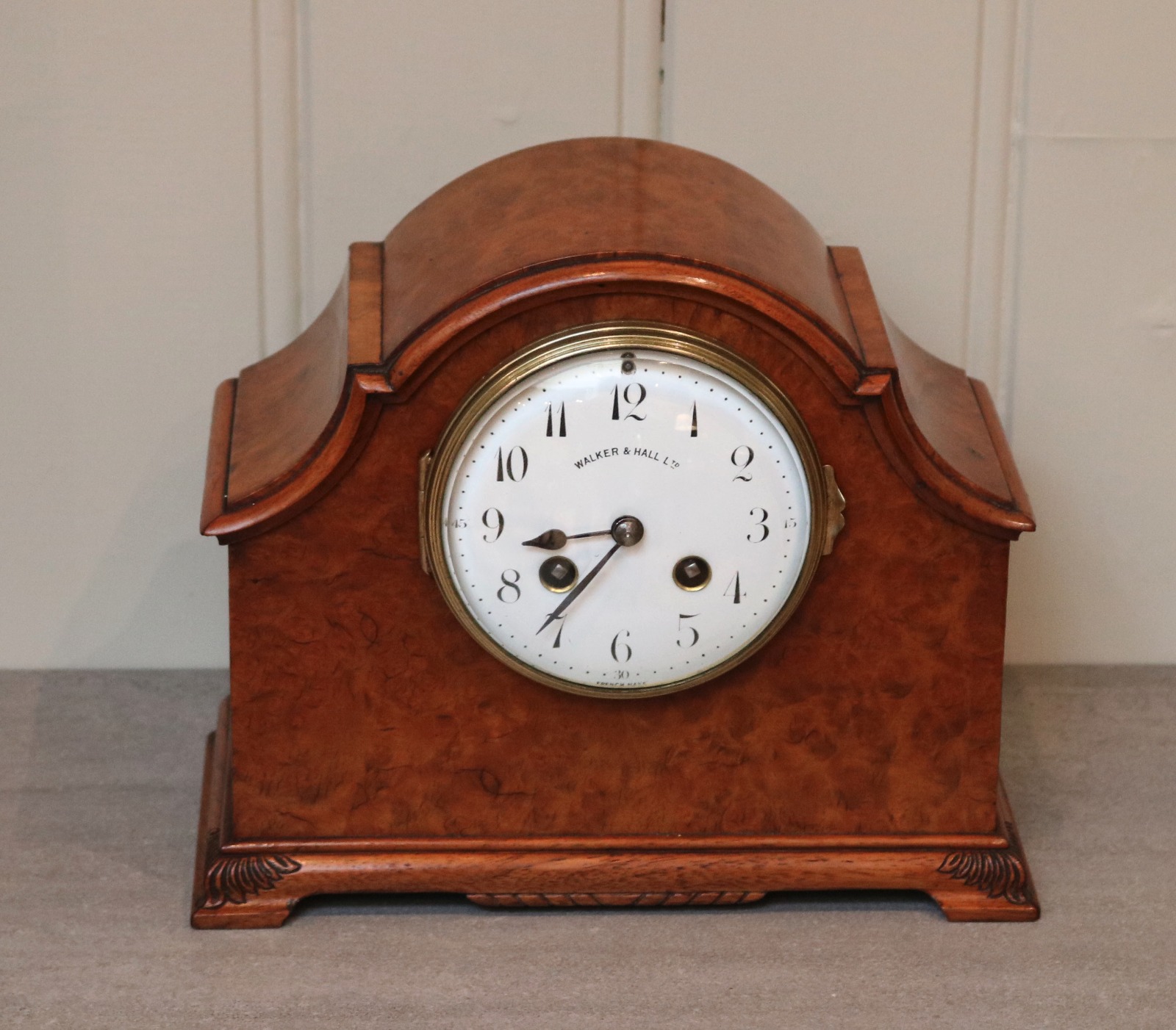 Burr Walnut Striking Mantel Clock (England & France, c.1915) (1 of 1)