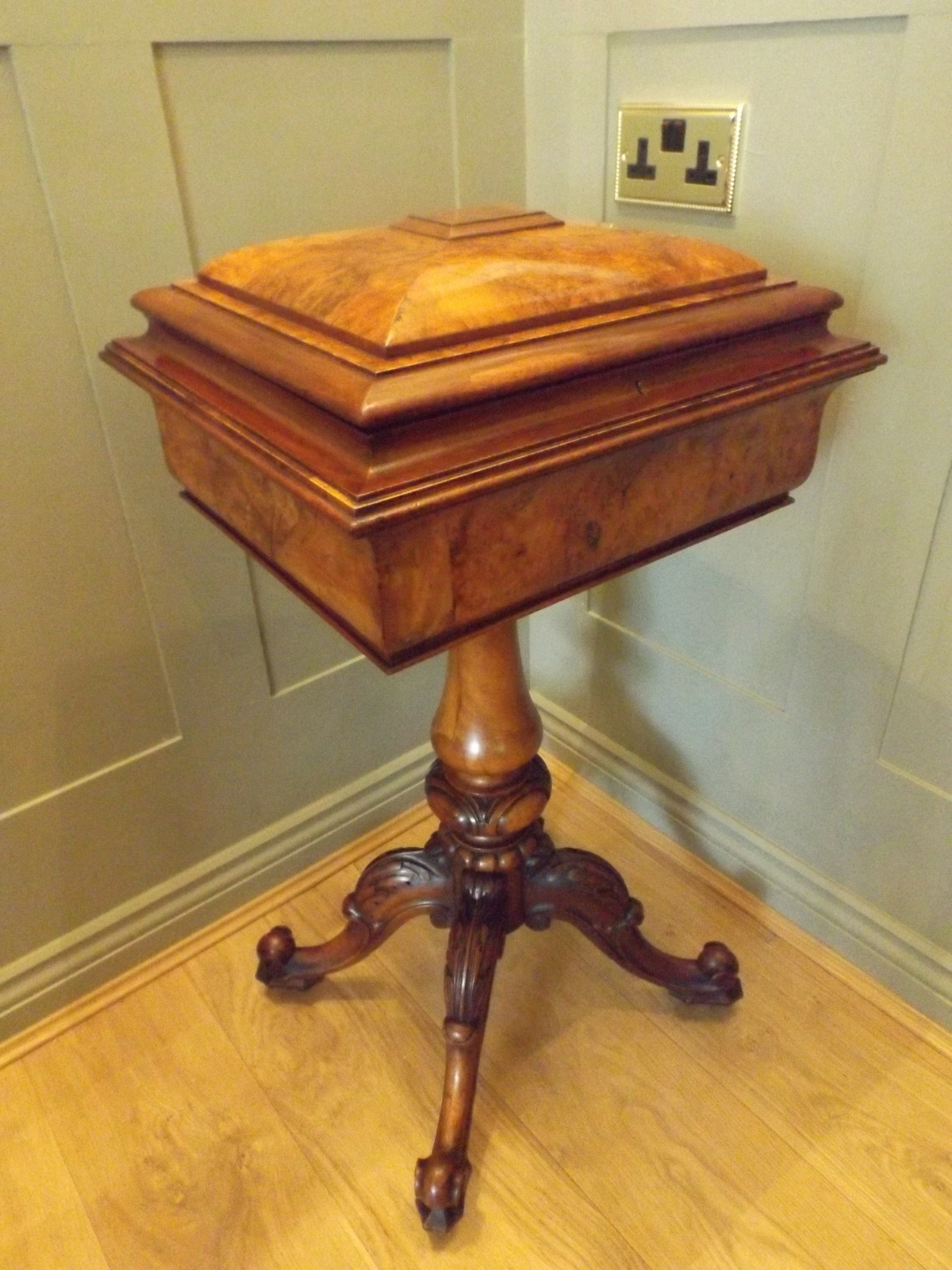 Burr Walnut Tea-Poy Tea Caddy by Thomas H. Filmer