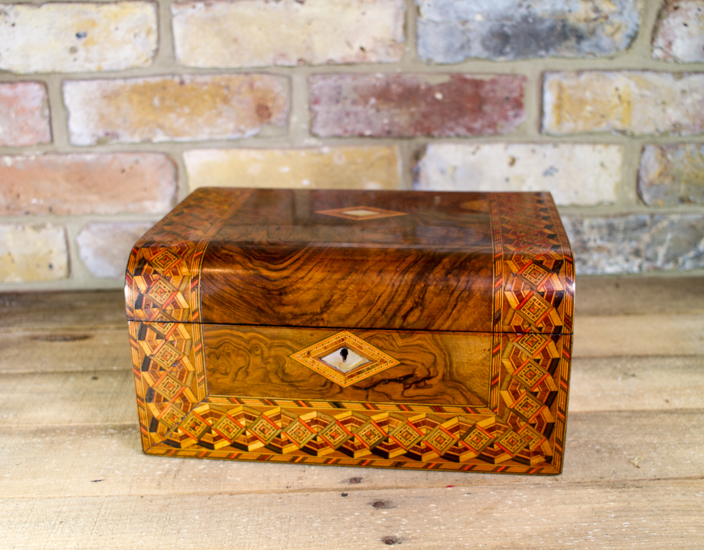Burr Walnut Tunbridge Ware Table Box c.1880