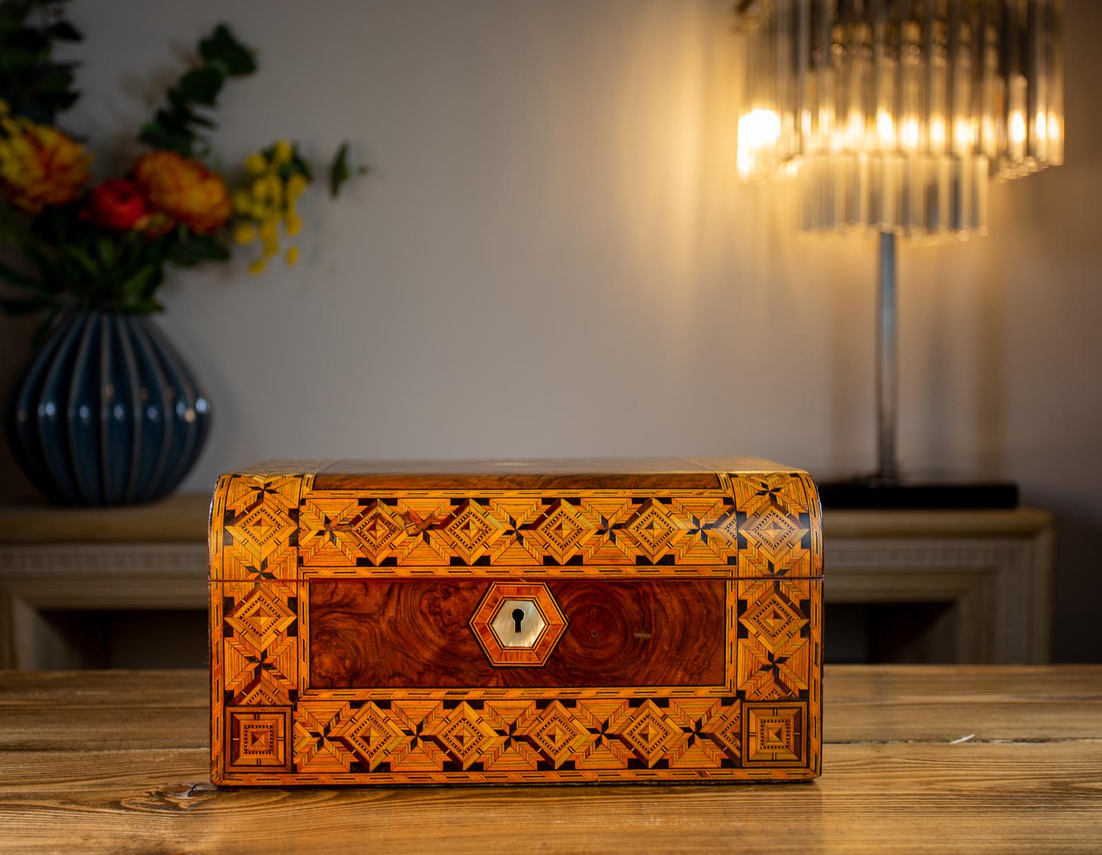 Burr Walnut Tunbridge Ware Table Box c.1880