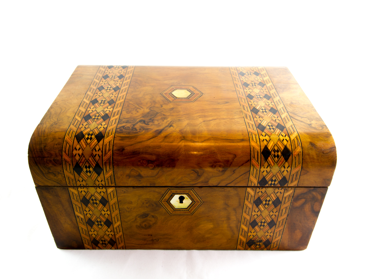 Burr Walnut Tunbridge Ware Writing Slope c.1870 (1 of 1)