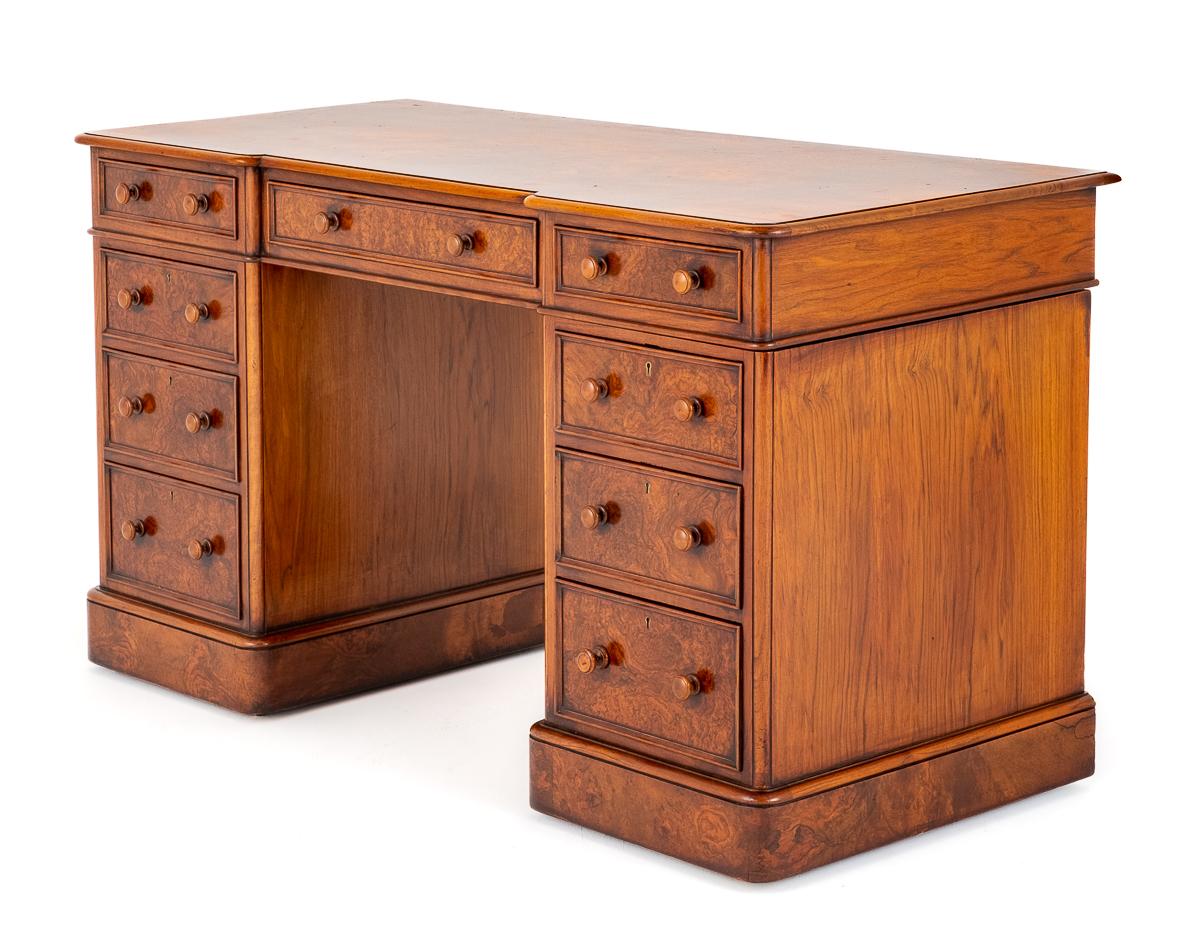 Burr Walnut Victorian Pedestal Desk (1 of 8)