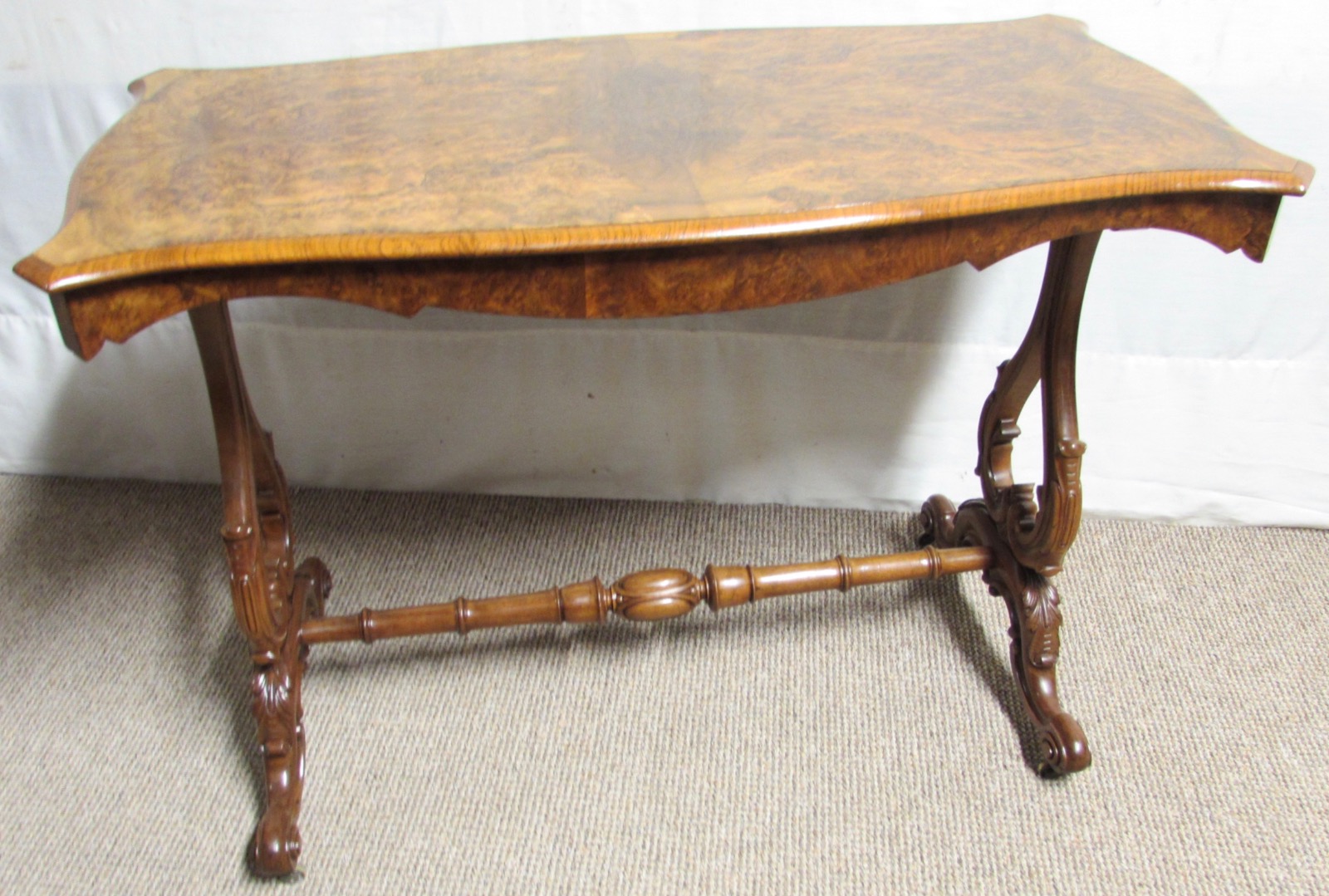 Burr Walnut Victorian Stretcher Table (1 of 1)