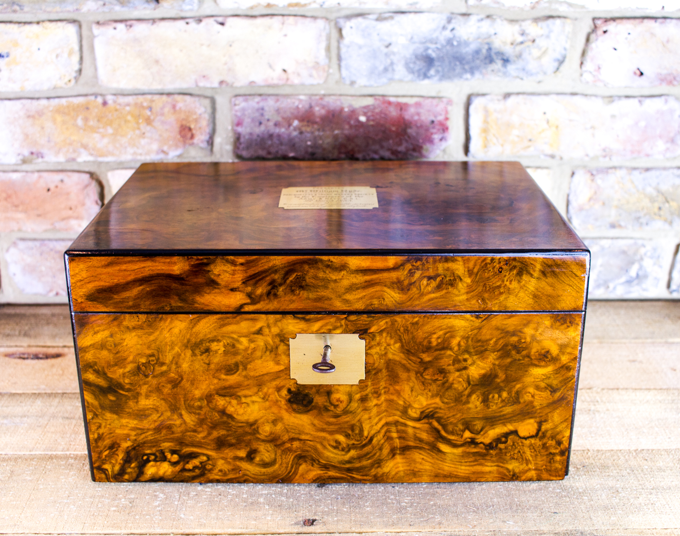 Burr Walnut Writing Slope with Original Plaque c.1885
