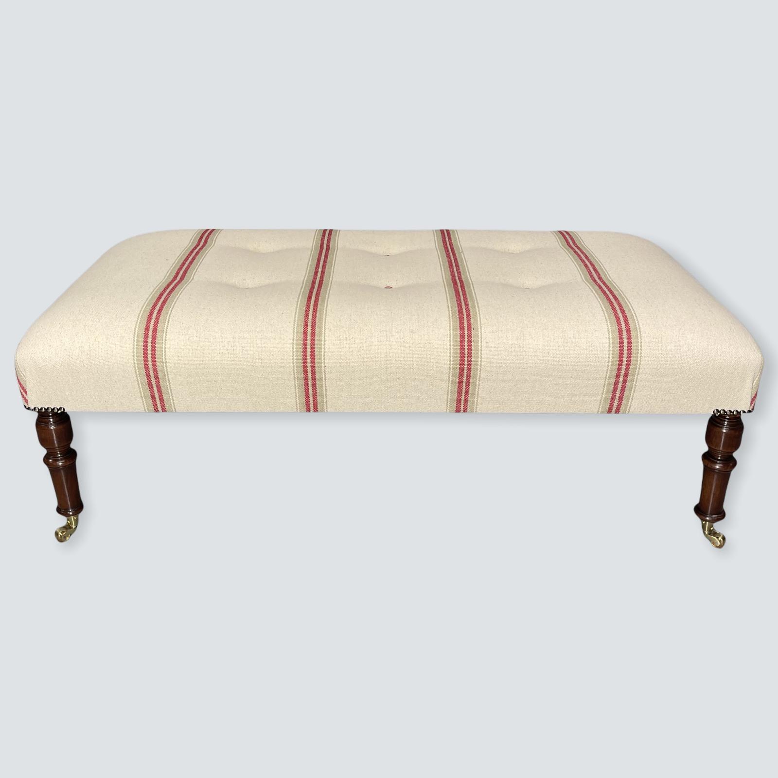 Buttoned Red Stripe Linen Centre Footstool