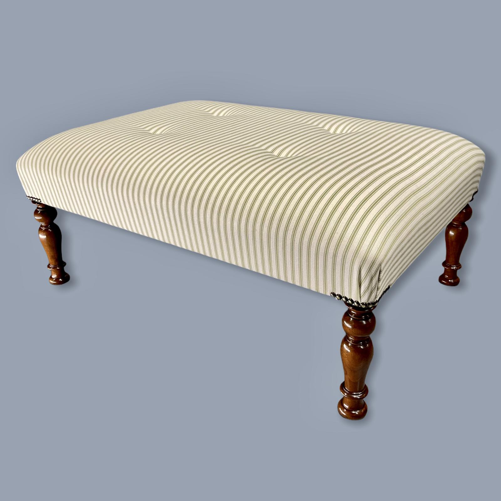 Buttoned Sage Green Ticking Stripe Footstool