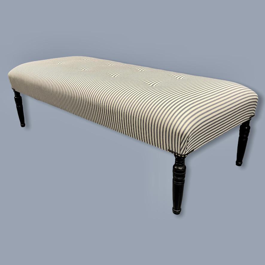 Buttoned Ticking Stripe Low Ottoman on Ebonised Legs (1 of 8)
