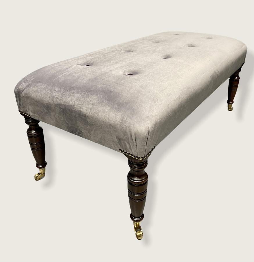 Buttoned Velvet Low Foot-Stool on Castors (1 of 6)