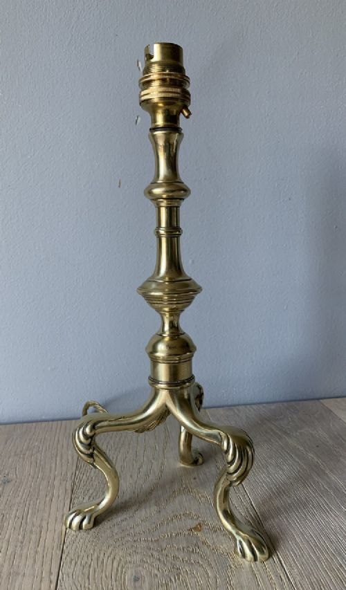 C Winn Registration Marked c.1890 Brass Tripod Table Lamp, Rewired & Pat Tested