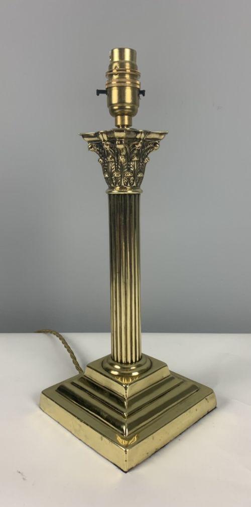 C1900 Brass Corinthian Column Table Lamp; Rewired And Pat Tested