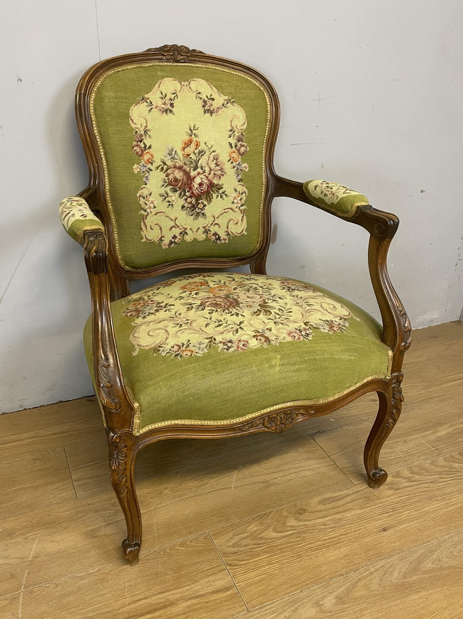 C19th Carved Walnut French Fauteuil Armchair