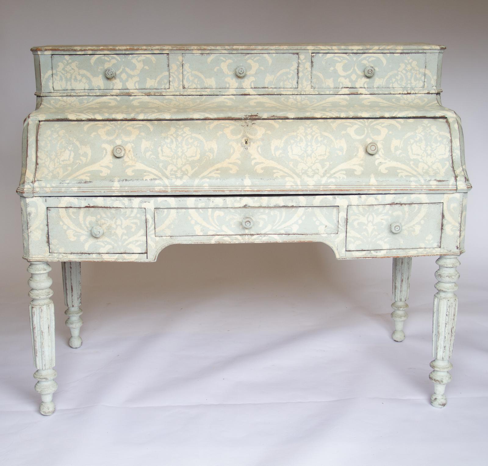 C19th European Painted Cylinder Writing Desk