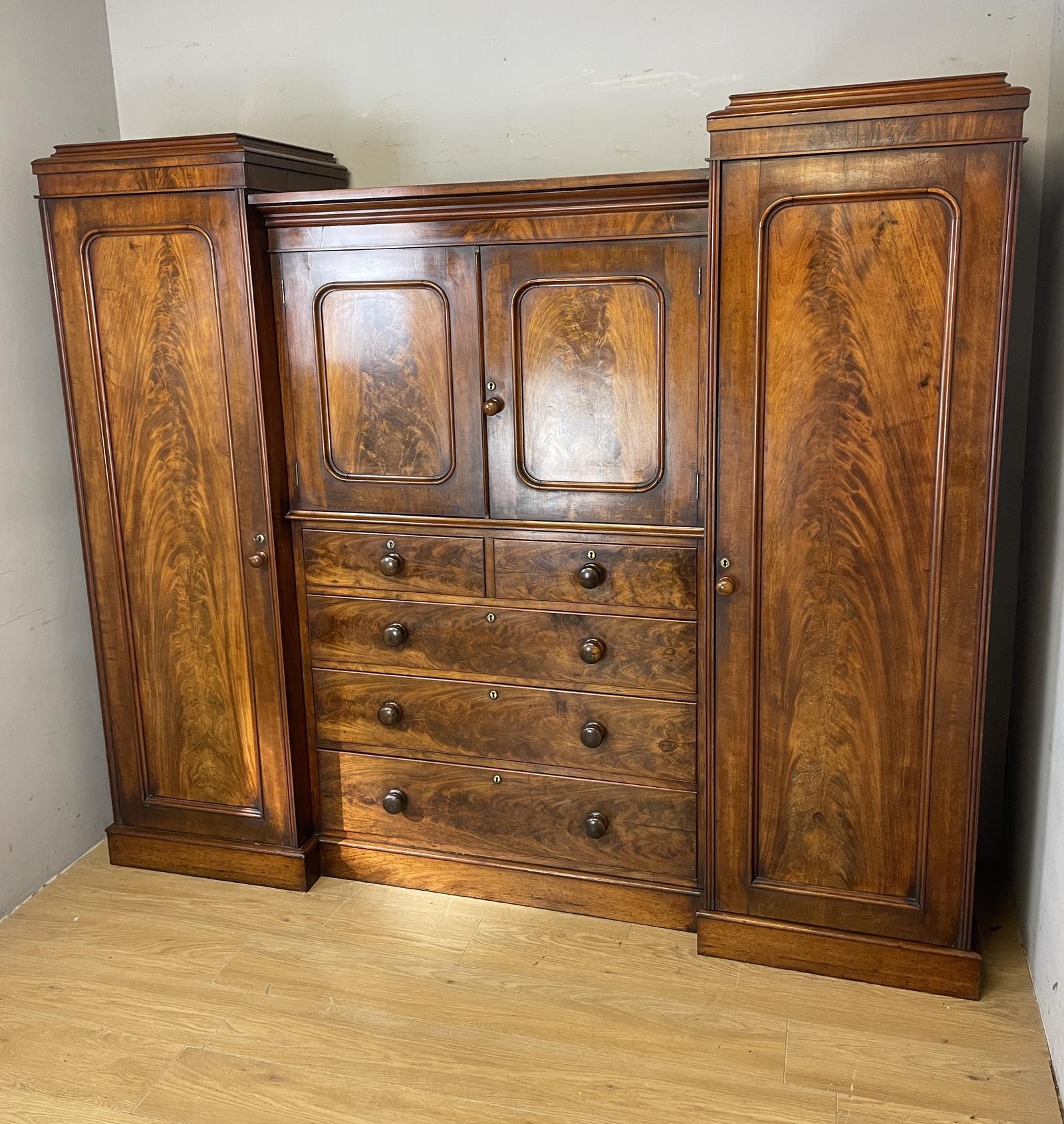 C19th Flame Mahogany Country House Sentry Box Wardrobe