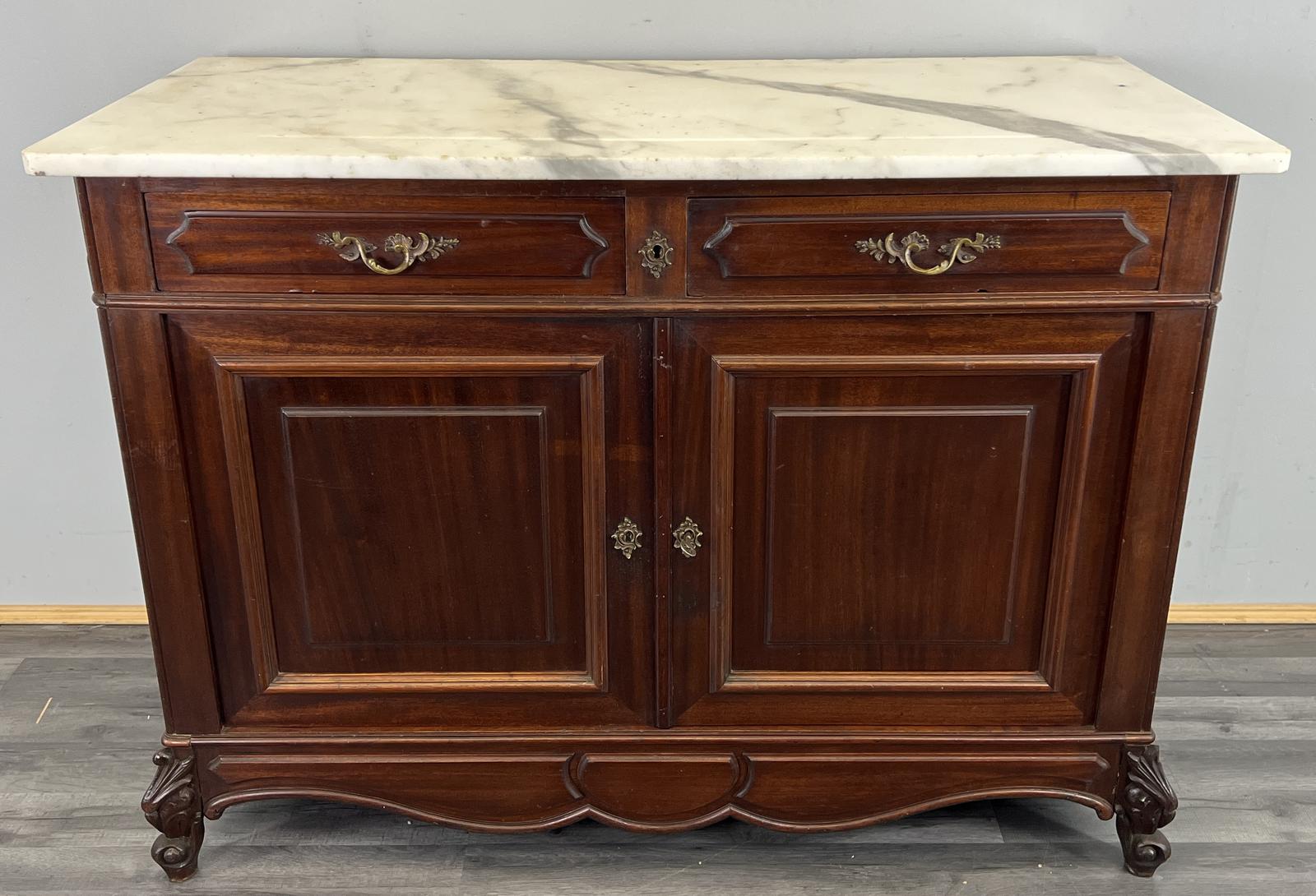 Vintage World has clarified that the Cabinet Antique French Style Walnut Marble Top Carved Storage (LA560562) is genuinely of the period declared with the date/period of manufacture being c.1920
