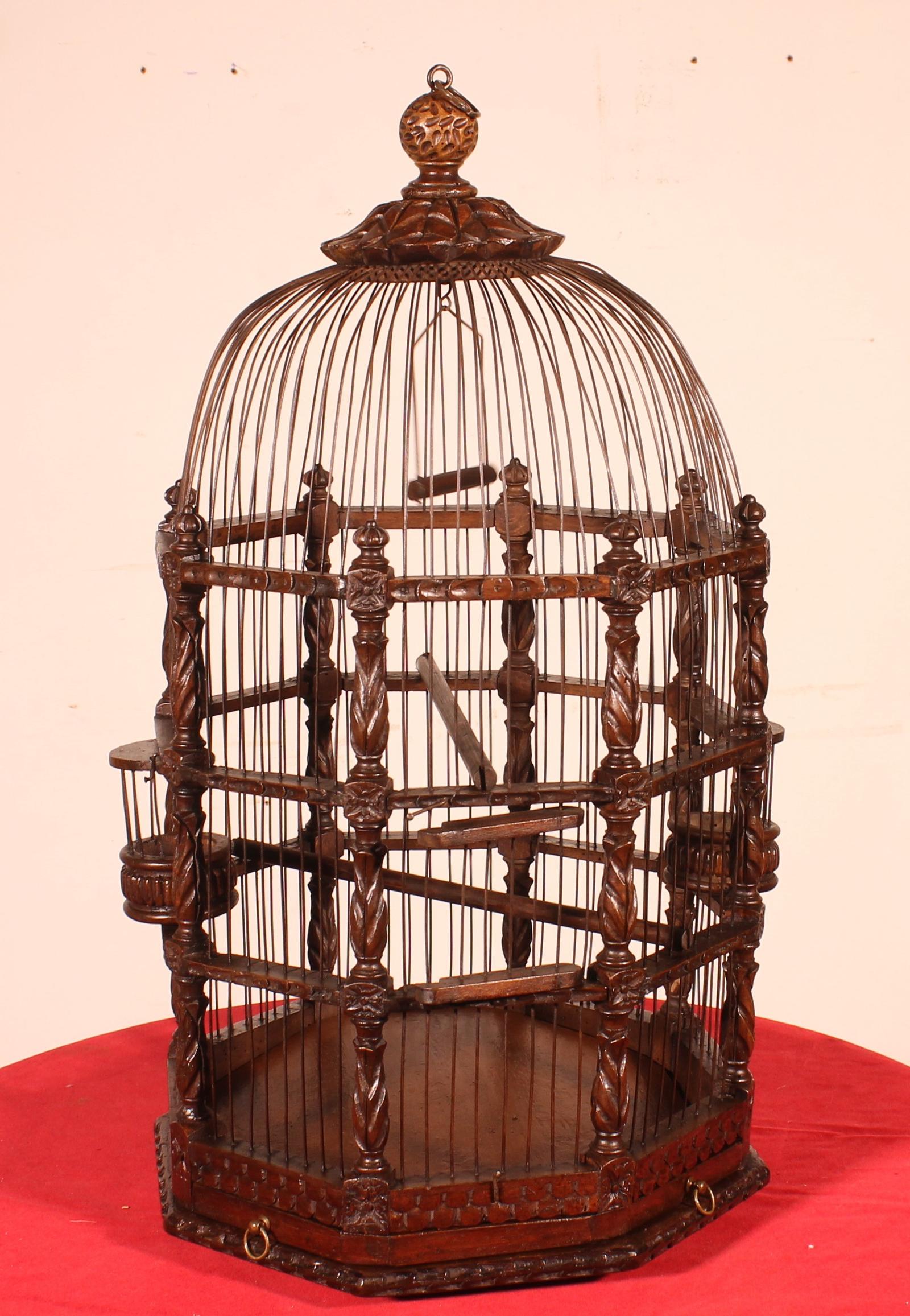 très belle cage à oiseaux de collection en noyer finement sculpté