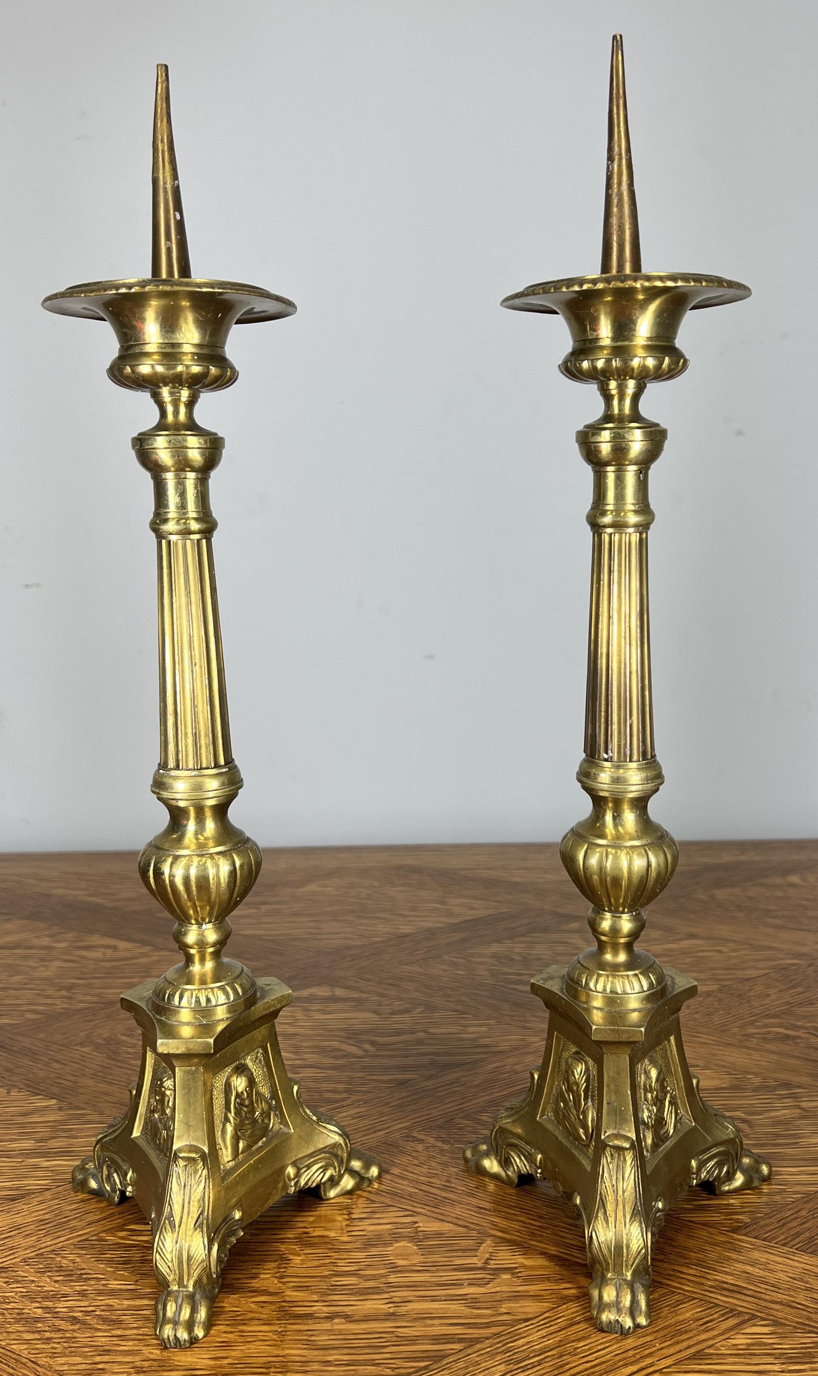 Candleholders Vintage French Brass Pair Tall Classical Candlesticks