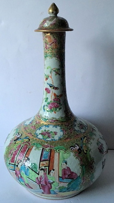 Canton Enamel Decorated Porcelain Bottle Vase & Cover (1 of 1)