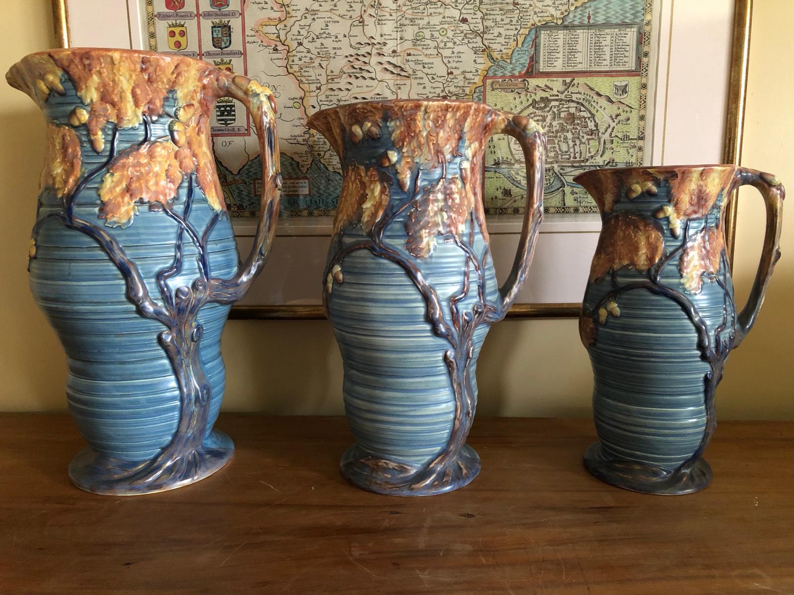 Carlton Ware Embossed Jugs Blue Nightime Oak Pattern c.1935