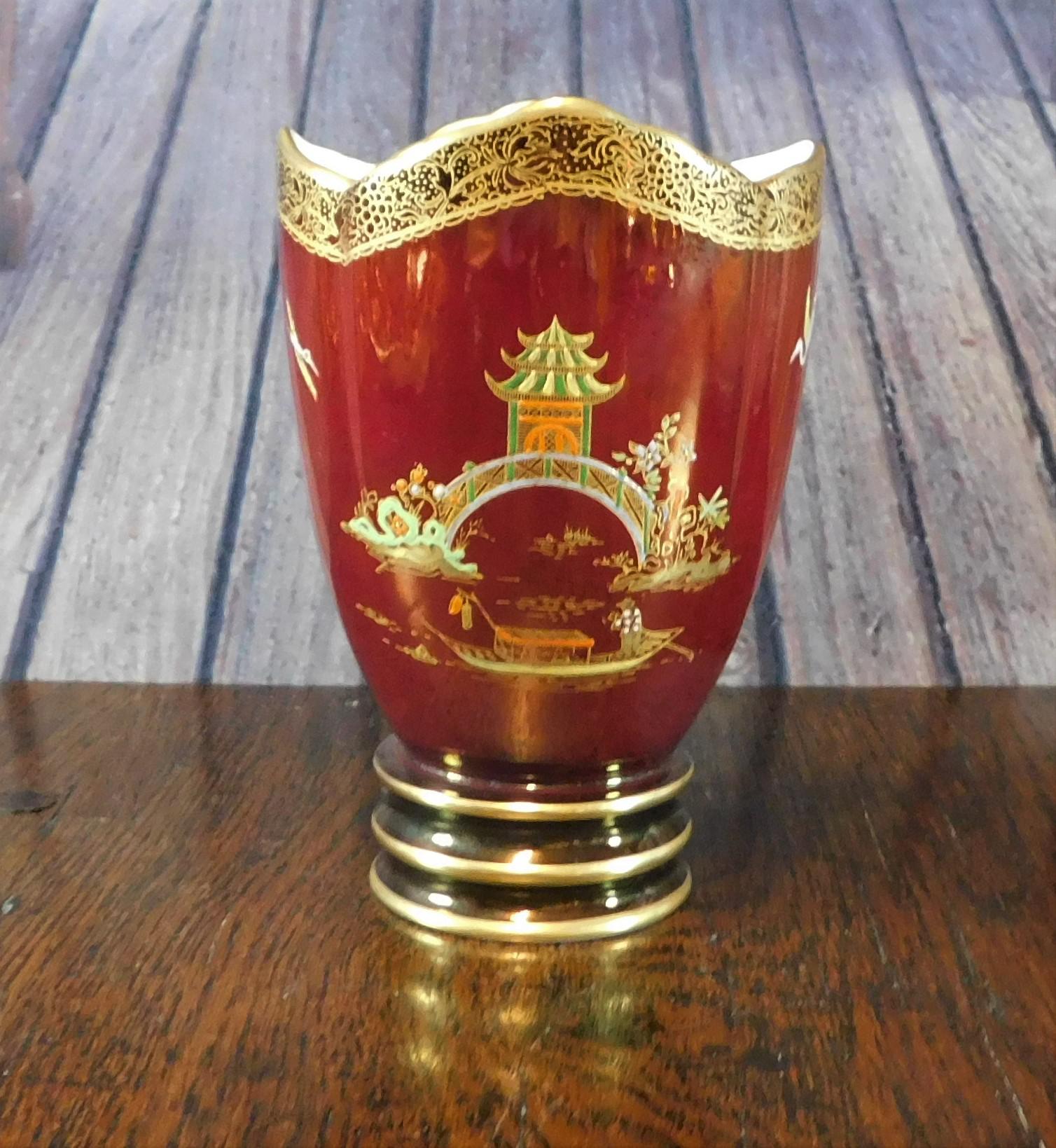 Carlton Ware, Rouge Royale, Hand Painted, Mikado Pattern Tulip Vase