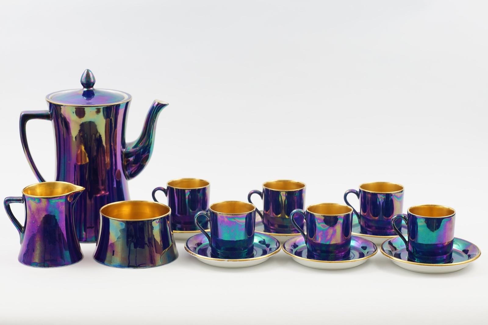 Carltonware Lustre Art Deco Purple 15 Piece Coffee Set - 1920s