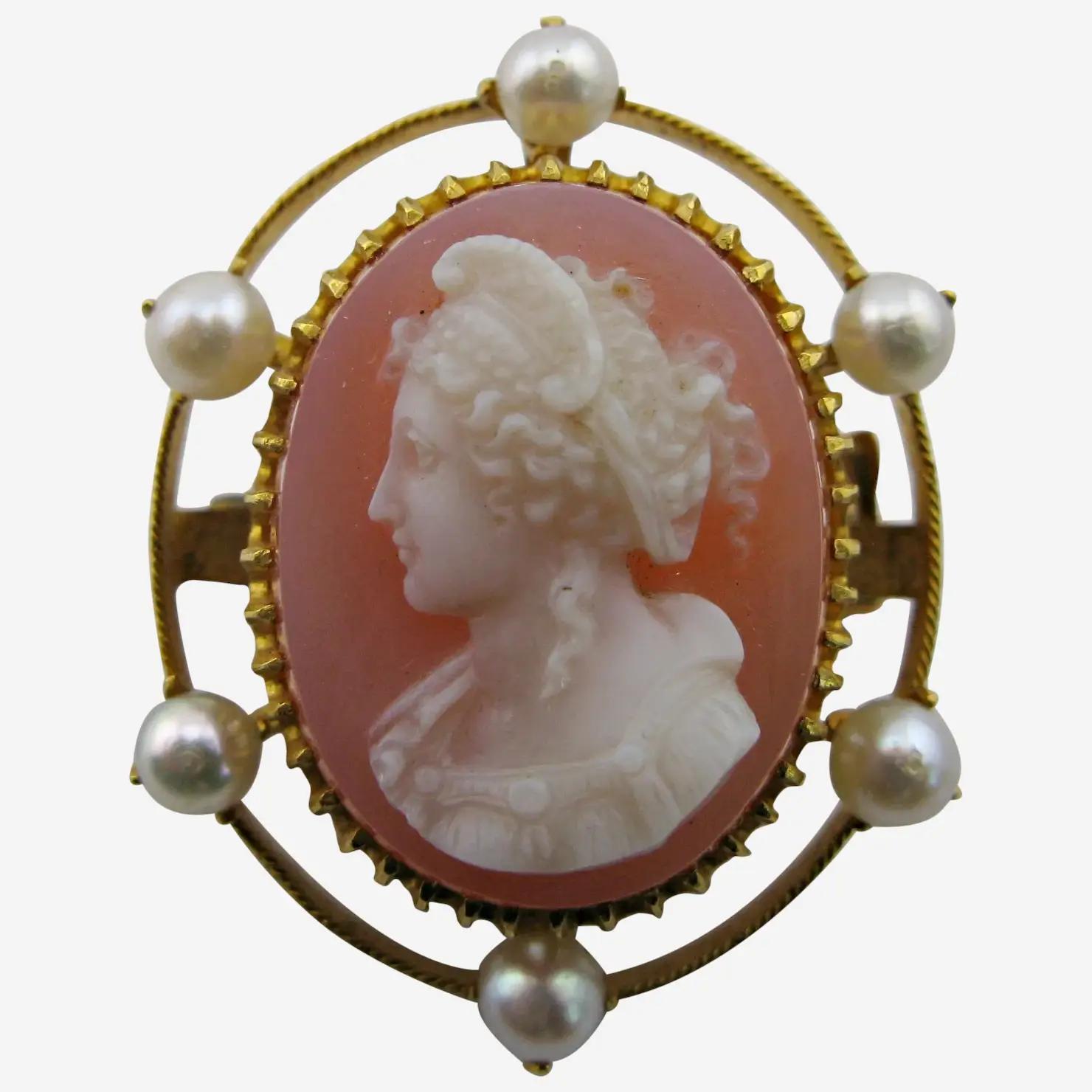 Carnelian Hardstone Cameo 18ct Gold Brooch of Classical Lady