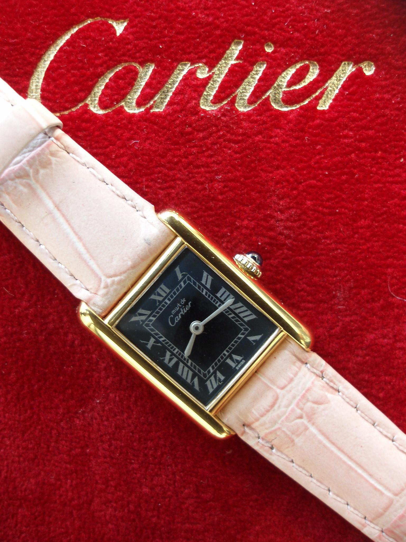Cartier Ladies Black Face Tank Wristwatch
